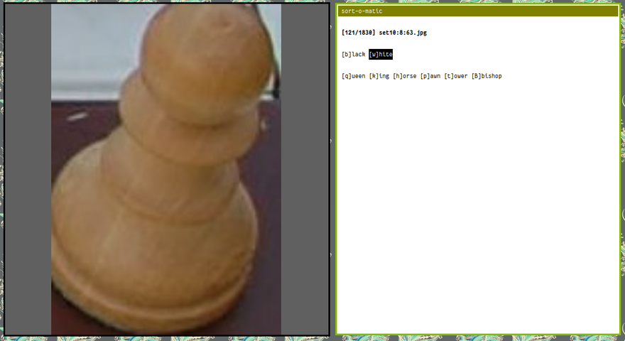 So here I was sitting with a directory of a few thousand pictures that needed labeling. We are sorting chess pieces by the way. I don't think there is any common tool out there to sort images like this and going through a normal file manager would have been insanely painful.