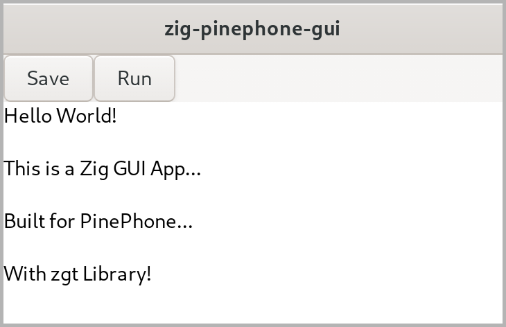 .text = "Hello World!\n\nThis is a Zig GUI App...\n\nBuilt for PinePhone...\n\nWith zgt Library!"