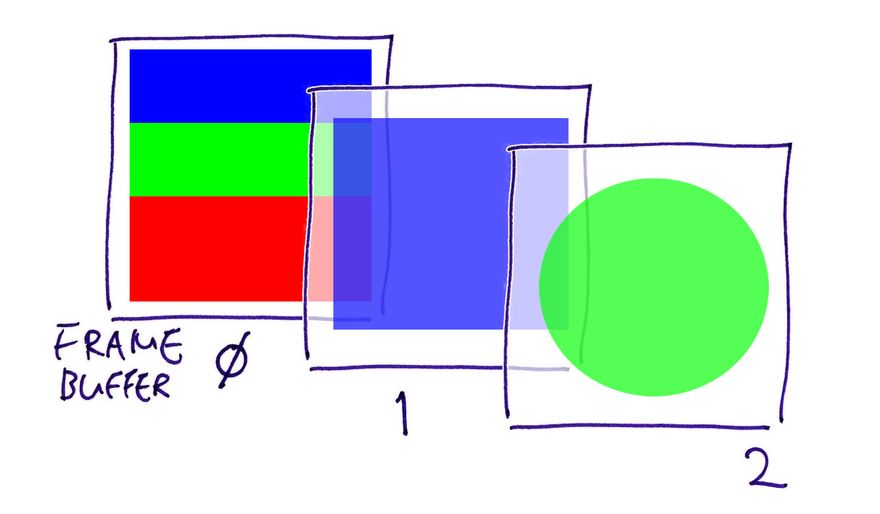 This means that the Global Alpha will be mixed with the Pixel Alpha. So the pixels will look extra faint for Framebuffer 2. (Green Circle, pic above)
