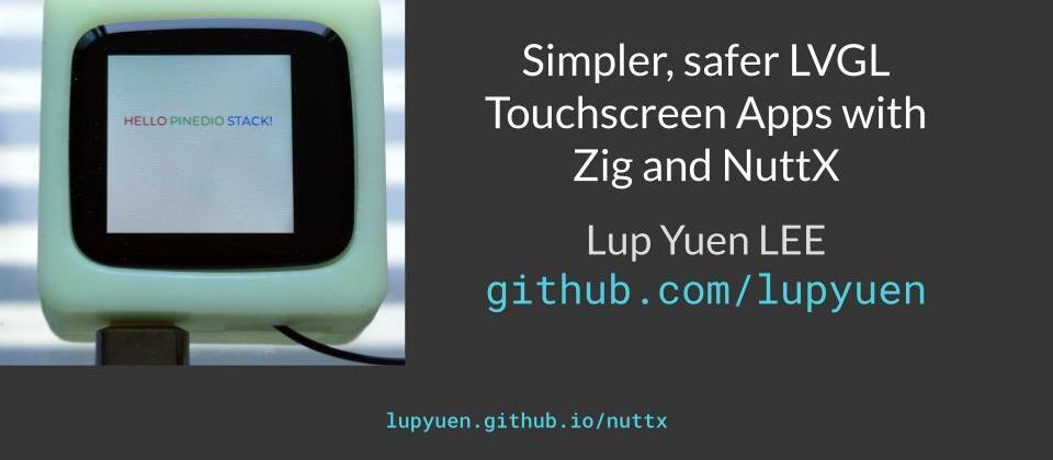 Is there a simpler and safer way to code Touchscreen Apps with the LVGL Graphics Library? In this presentation we’ll talk about migrating an Apache NuttX LVGL App from C to Zig, and the benefits that it brings.