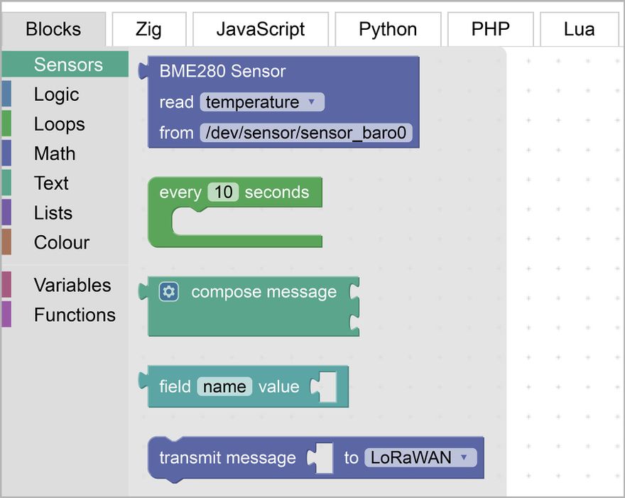 • Transmit Message Block: Transmit a CBOR Message to LoRaWAN