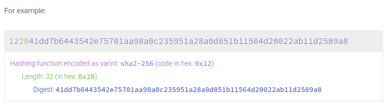 We have our first clue - multihash. On their website there is a nice visualization of what is happening:
