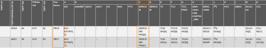 As you can see we also enable peripheral multiplexing for PB16 and PB17. This means in general that the pins are now controlled by SERCOM5.